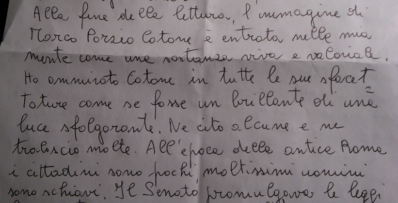“Questo romanzo è utile come uno strumento particolare per studiare la nostra storia antica. Leggerlo è stato un modo per conoscere la vita di Catone e delle persone a lui vicine nel tempo antico della Repubblica Romana. Corti è riuscito a tradurre le immagini in parole. Tutto questo è frutto di ricerca e di lungo studio[…]Ho ammirato Catone in tutte le sue sfaccettature, come se fosse un brillante di una luce sfolgorante[…]In lui vediamo l’osservanza dei valori degli avi: VIRTU-valore militare intrecciato al valore civico; PIETAS-rapporto convinto ocn la Divinità; FEDE- come fedeltà rigorosa alla parola data…
