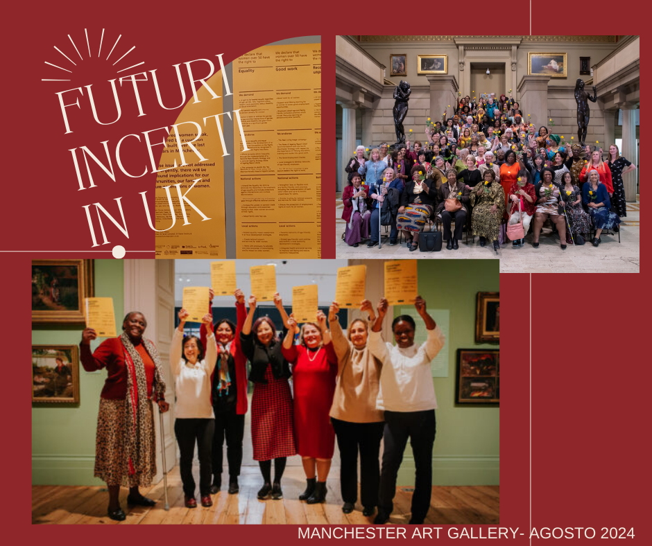 La breve vacanza a Manchester ha aperto un’interessante e stimolante finestra sul mondo delle donne over 50 a Manchester, e non solo. Erano in quattro: una settantenne, una cinquantenne, una ventenne e una sedicenne, che durante la visita hanno raccolto molto materiale utile per riflettere sul senso dell’essere donna attraverso l’arte, la storia, i luoghi, il tempo. UNCERTAIN FUTURES IN ITALIANO