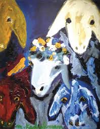 Il “pastore” che portò il suo gregge alla Biennale di Elena Lowenthal (La Stampa), mi ha aperto un mondo che ignoravo, quello di Menashe Kadishman, della sue pecore e della sua arte, che certamente si armonizza con tutti gli scenari narrativi delle opere citate sopra: