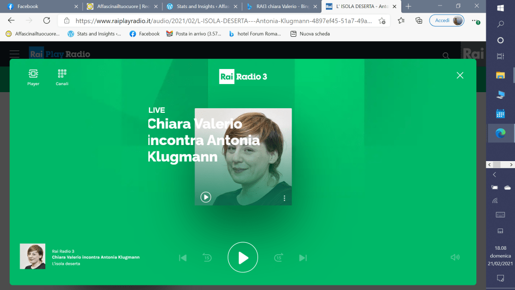 Ma che bella la puntata di Domenica 21 Febbraio! Arrivo che è già iniziata, ma solo da poco. La voce squillante di Chef Antonia Klugmann mi cattura. E mi trascina dentro le sue scelte di naufraga sull’isola deserta di Chiara Valerio.